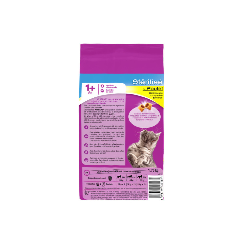 CROQUETTES POULET -CHAT STÉRILISÉ 1+ AN - WHISKAS - 1,75 KG