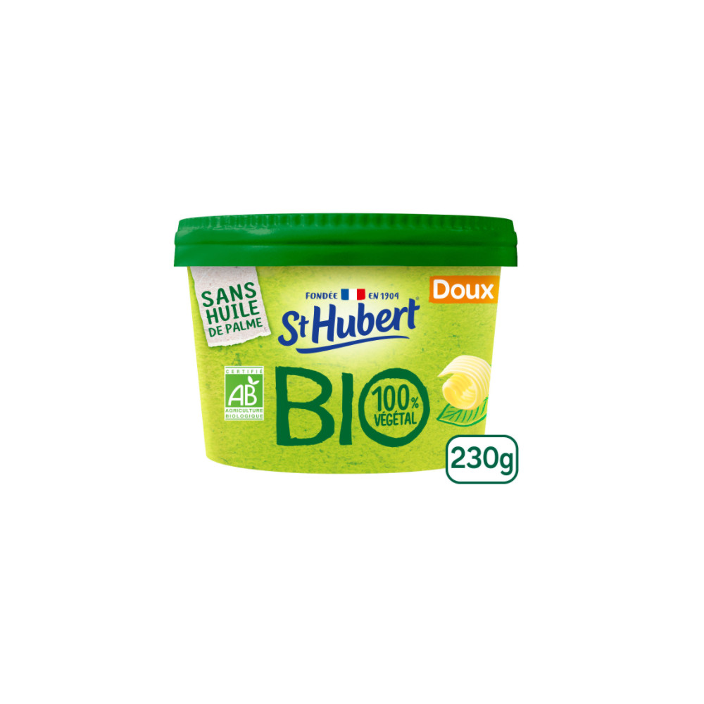 St Hubert BIO® est fabriqué en France, à partir de matières premières agricoles biologiques d'origine végétale, et participe ainsi à la construction de la démarche responsable de l'entreprise St Hubert. Sa recette 100% végétale, sans huile de palme, sans arôme ajouté et sans colorant, convient aux végétariens et aux végétaliens.