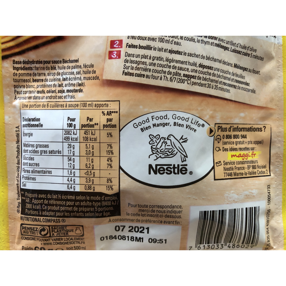 Découvrez la sauce Béchamel Saveur à l'Ancienne de MAGGI, l'atout indispensable pour sublimer vos gratins ! Relevée d'une note de muscade, elle apportera un goût inimitable à vos lasagnes et vos gratins de pâtes, de pommes de terre ou de légumes ! Préparée avec du lait, la sauce Béchamel MAGGI c’est la garantie d’une sauce inratable en un minimum de temps.