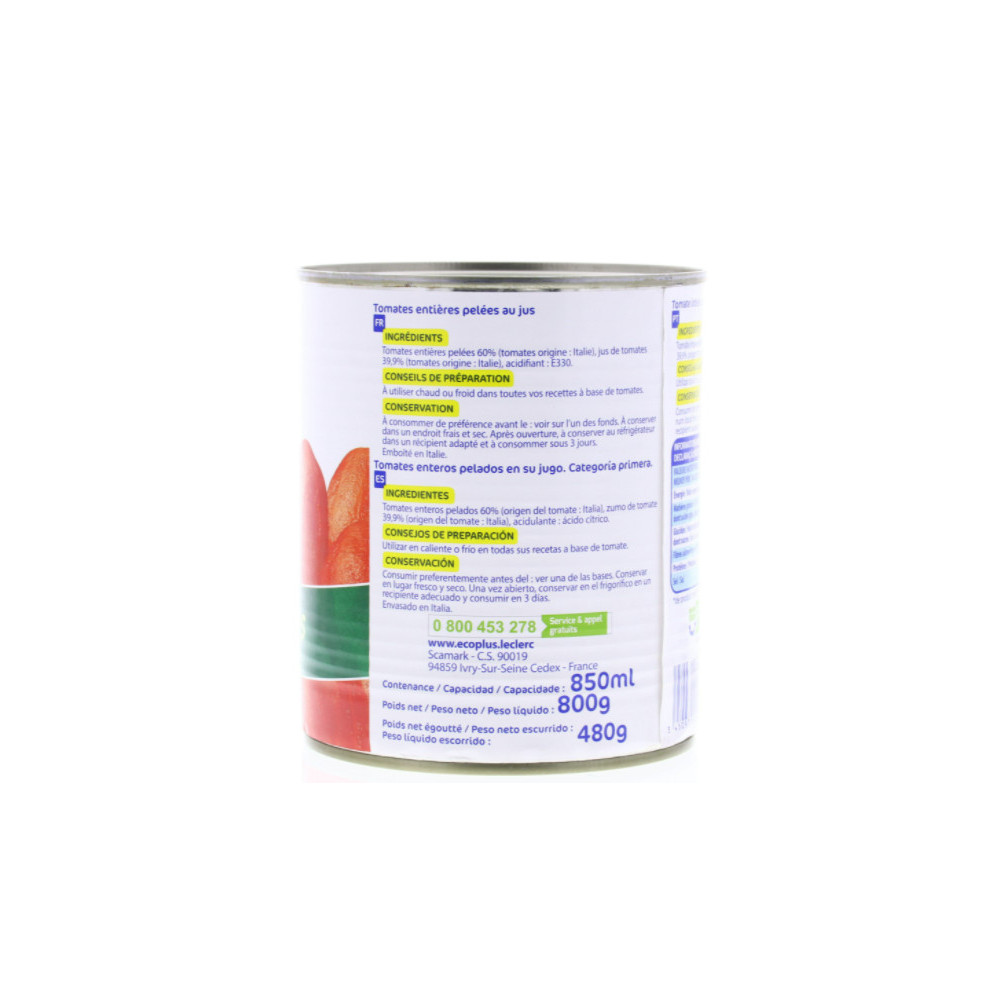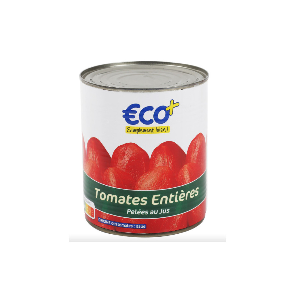 TOMATES ENTIÈRES PELÉES AU JUS - 476 G - ECO +