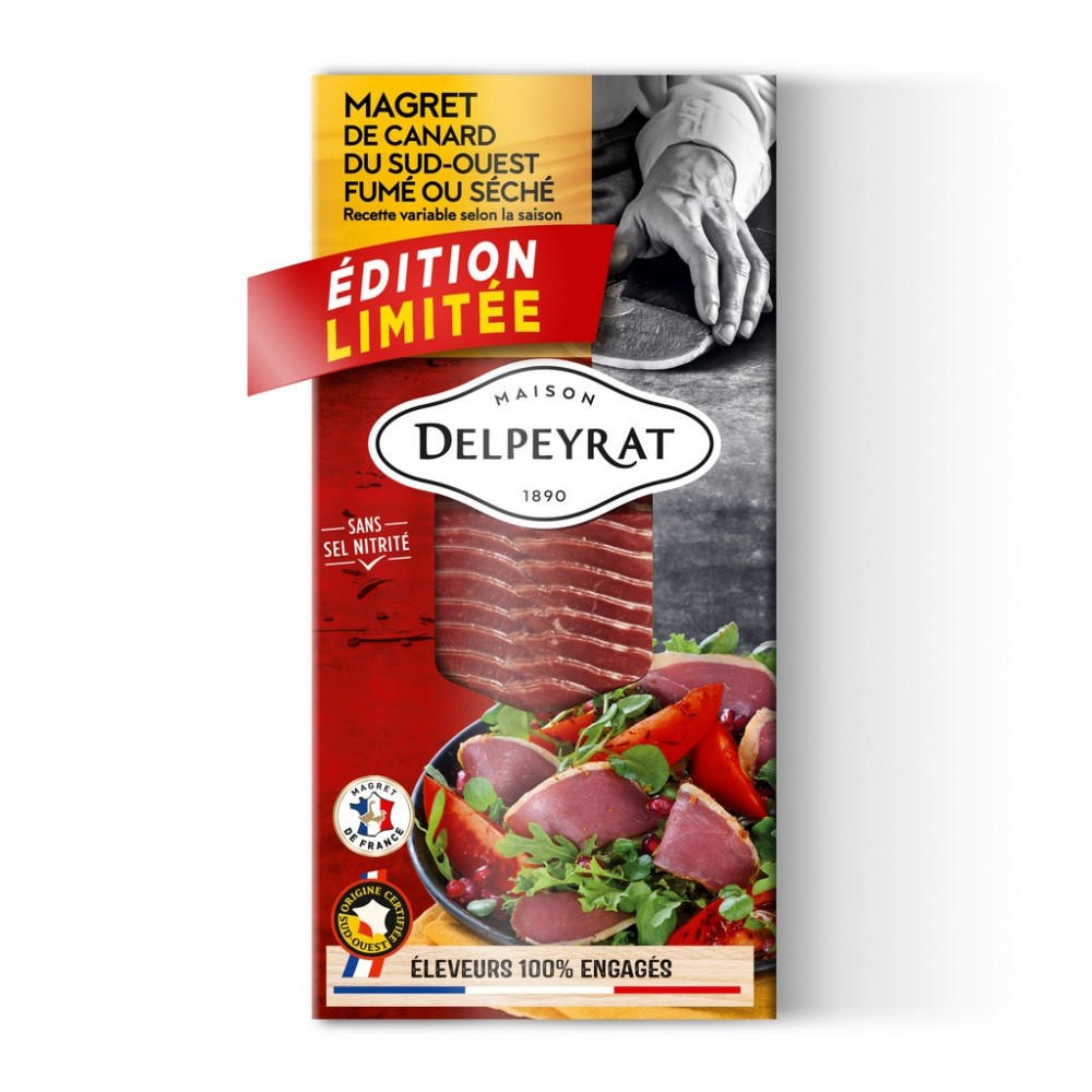 Magret de canard du Sud-Ouest (Origine France),sel, épices 0.3% (paprika, piment, cumin, poivre), oignon et oignon grillé, poivrons rouge et vert, ail, origan, coriandre, thym, ferments lactiques, antioxydants: ascorbate de sodium