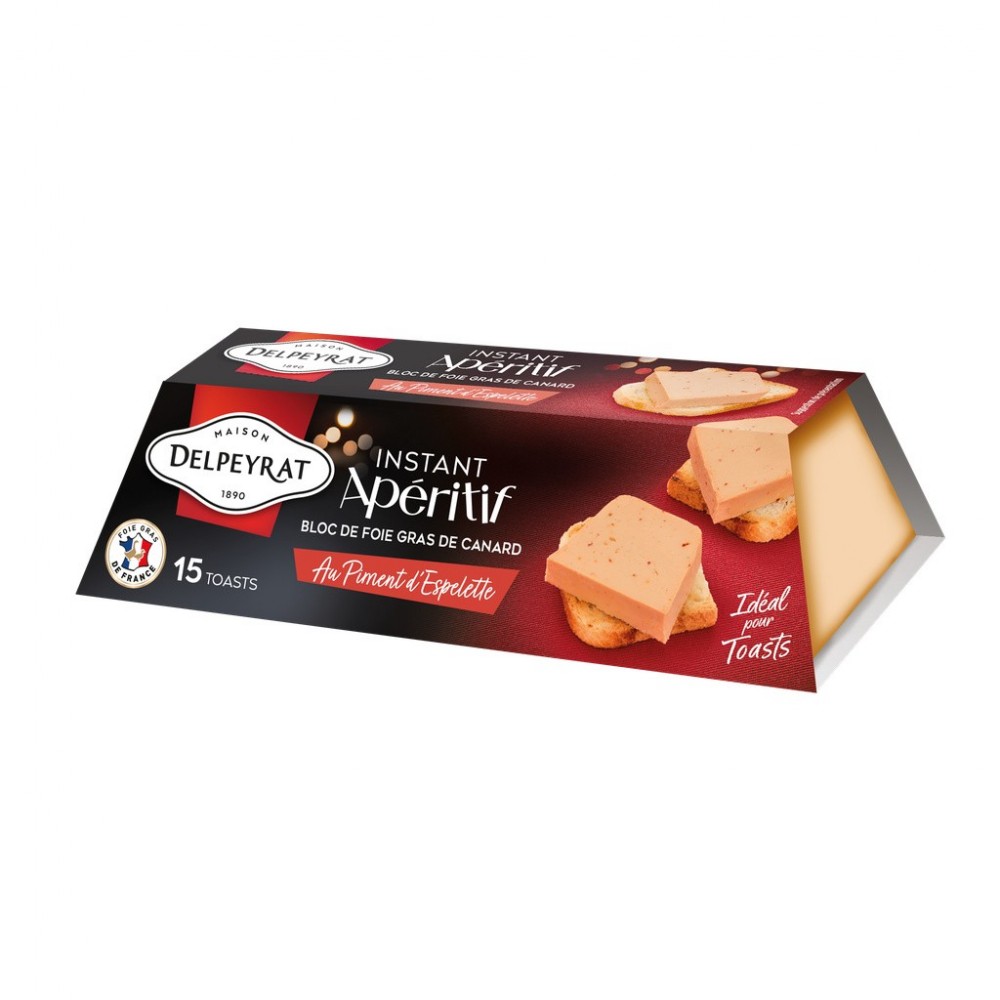 Bloc de foie gras de canard au Piment d'Espelette- barquette 100 gr - origine France - Instant Apéritif Delpeyrat