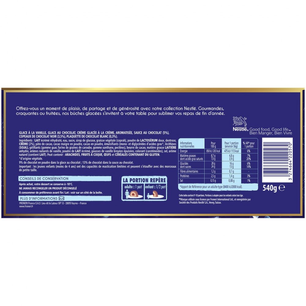 La traditionnelle Dame Blanche revisitée en bûche glacée ! L'association délicieuse de glaces parfum crème, vanille et chocolat pour un moment gourmand en famille !