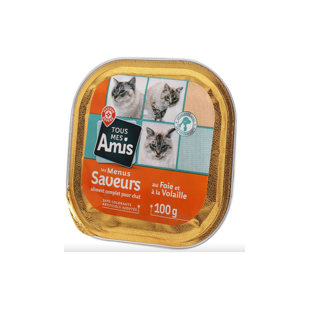 BARQUETTE POUR CHAT RICHE EN FOIE ET VOLAILLE - TOUS MES AMIS - 100G