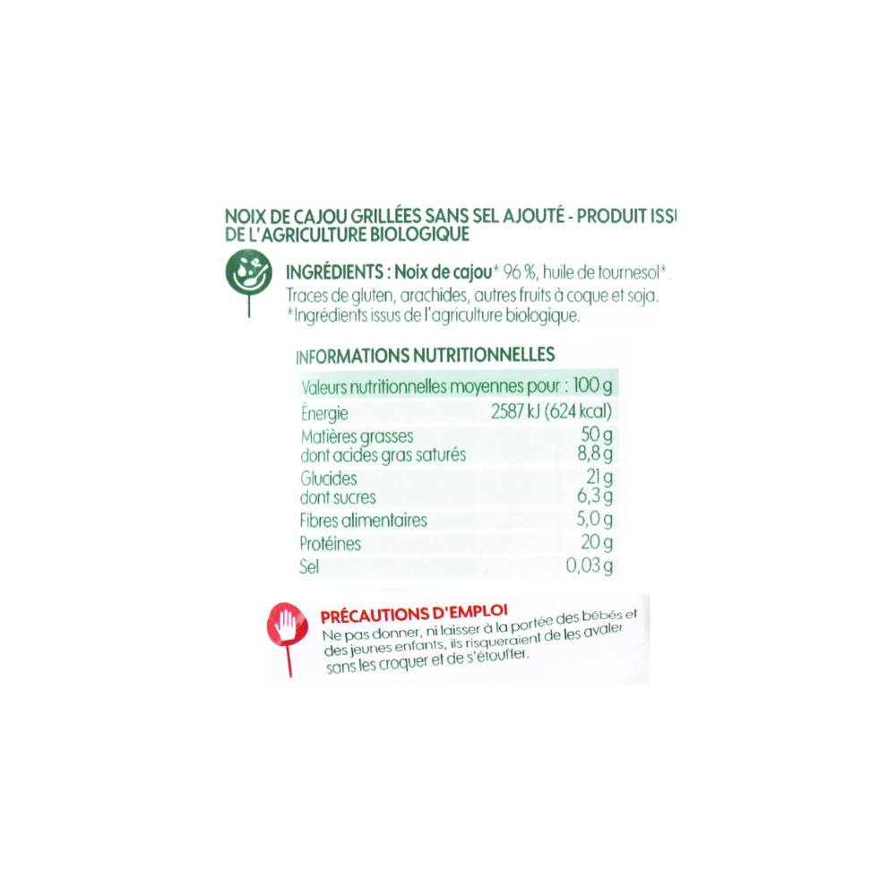 Noix de cajou grilles sans sel ajoute - Produit issu de l'agriculture biologique