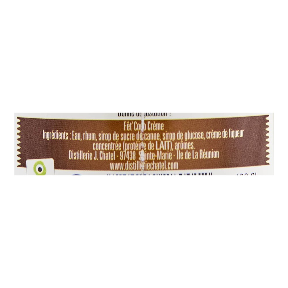 Eau, Rhum, Sirop de sucre de canne, Sirop de glucose, crème de liqueur concentré (protéine de Lait), arômes