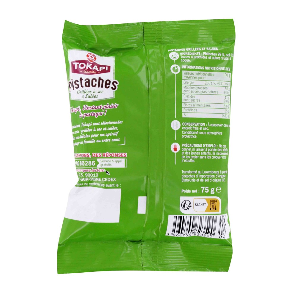 PISTACHES GRILLEES ET SALEES 75G TOKAPI