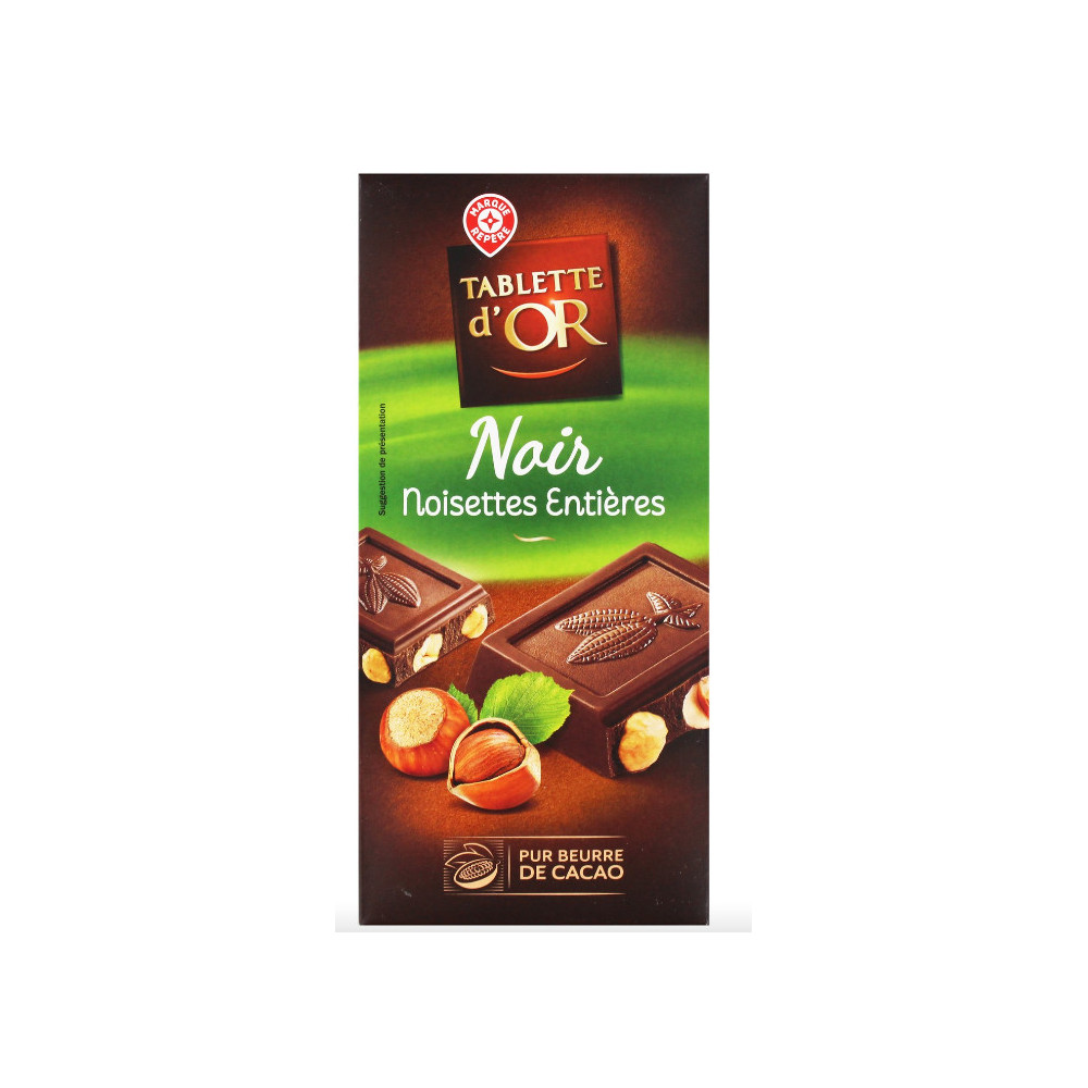 TABLETTE CHOCOLAT NOIR NOISETTES -TABLETTE D'OR- 200GR