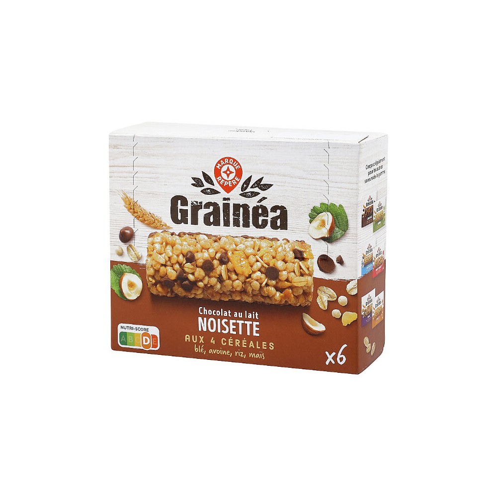 BARRES CEREALES CHOCOLAT LAIT NOISETTE AUX 4 CEREALES GRAINEA X6