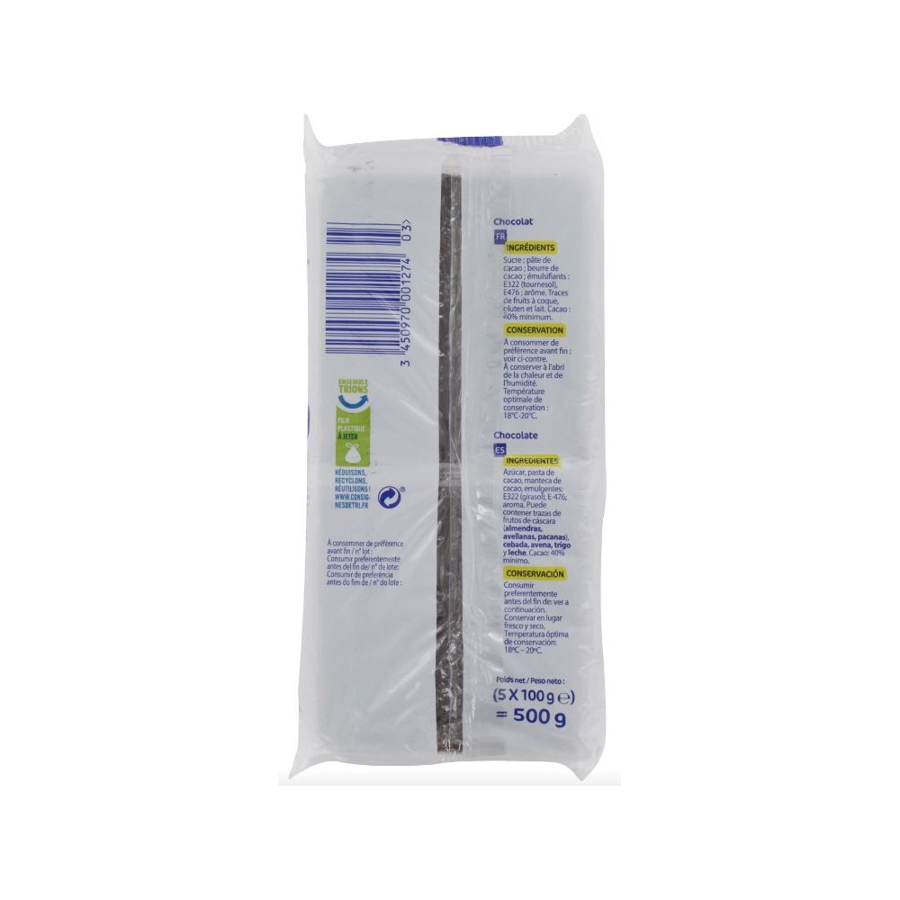 Tablettes Chocolat Noir - ECO+ - 5x100g (500g)