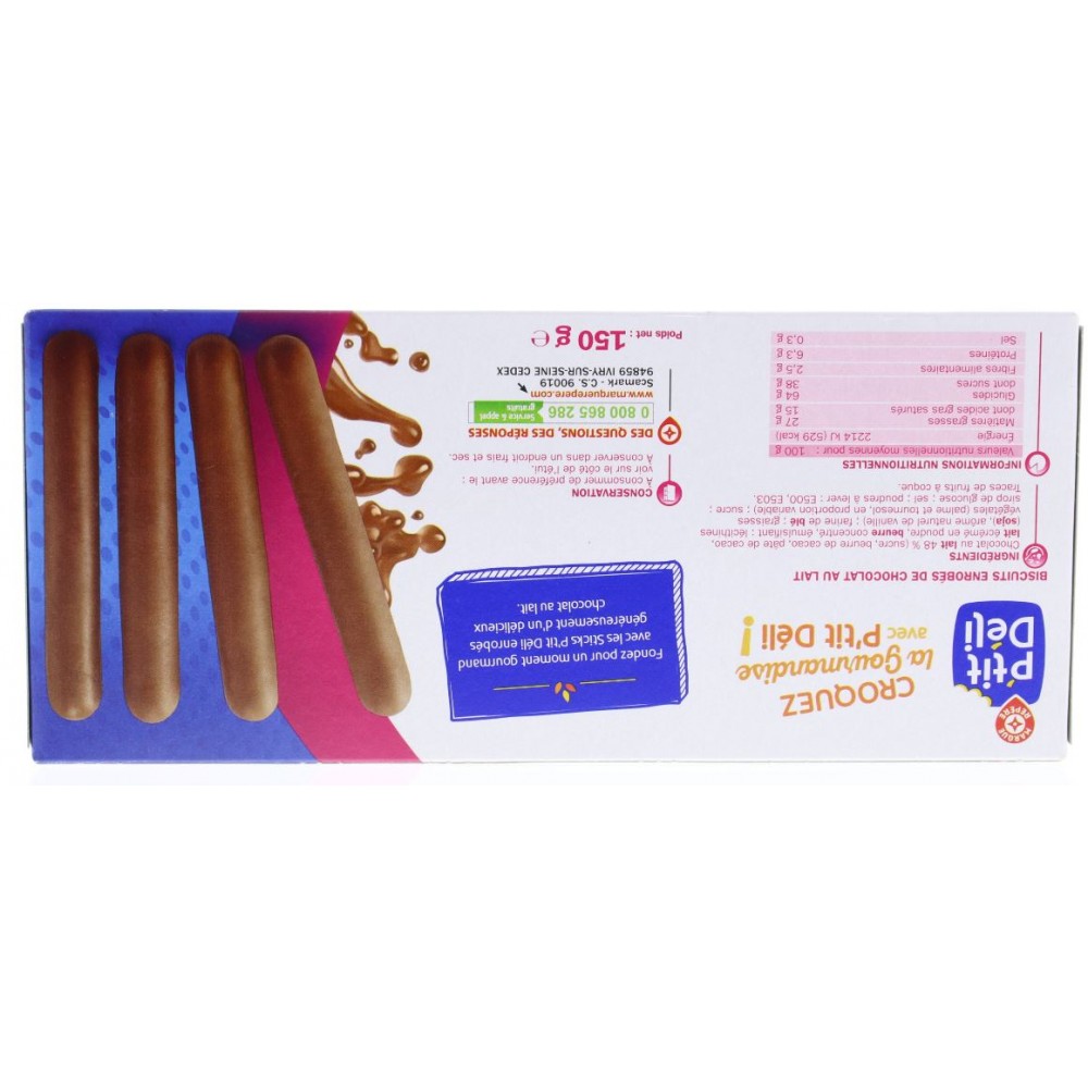 Bâtonnets enrobés de Chocolat au Lait STICKS - P'TIT DELI - 150G