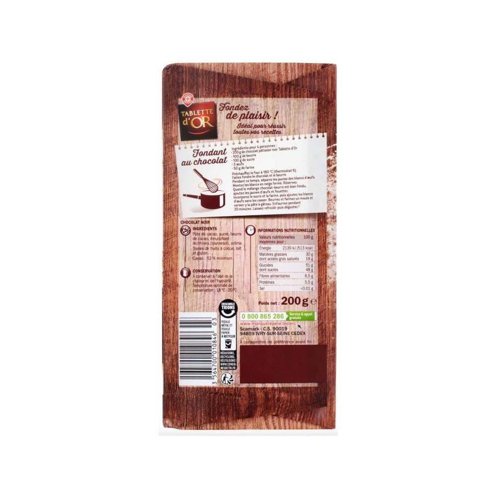 Tablette Chocolat Pâtissier Noir - TABLETTE D'OR - 200g