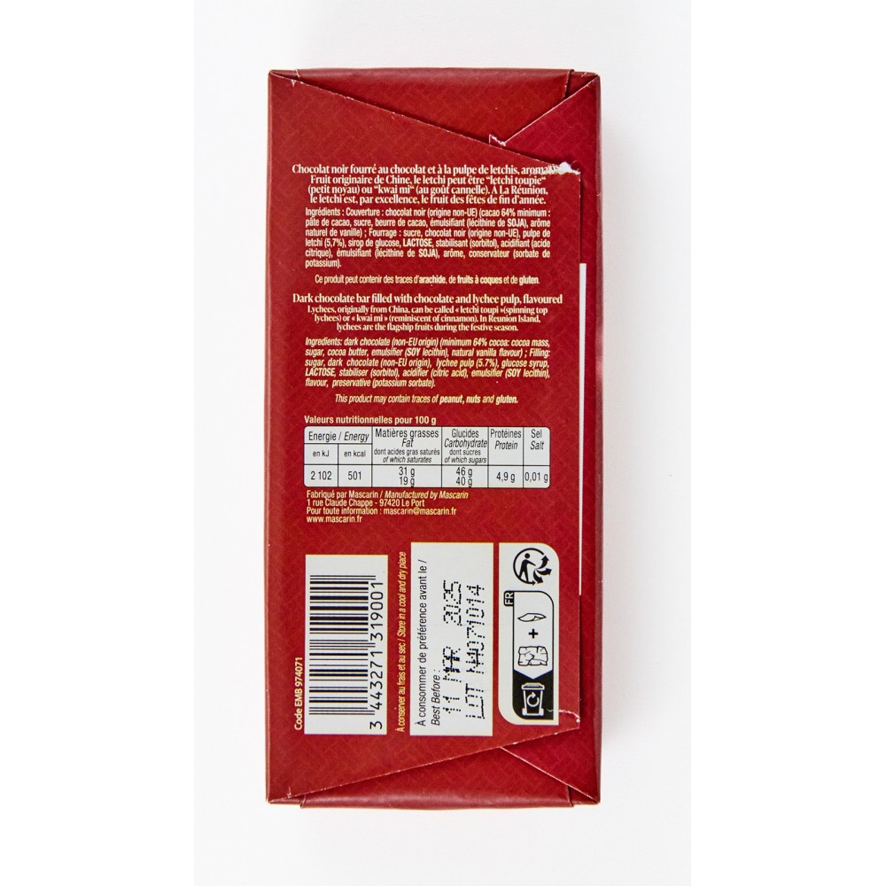 Tablette Chocolat noir fourré letchi - MASCARIN - 100g