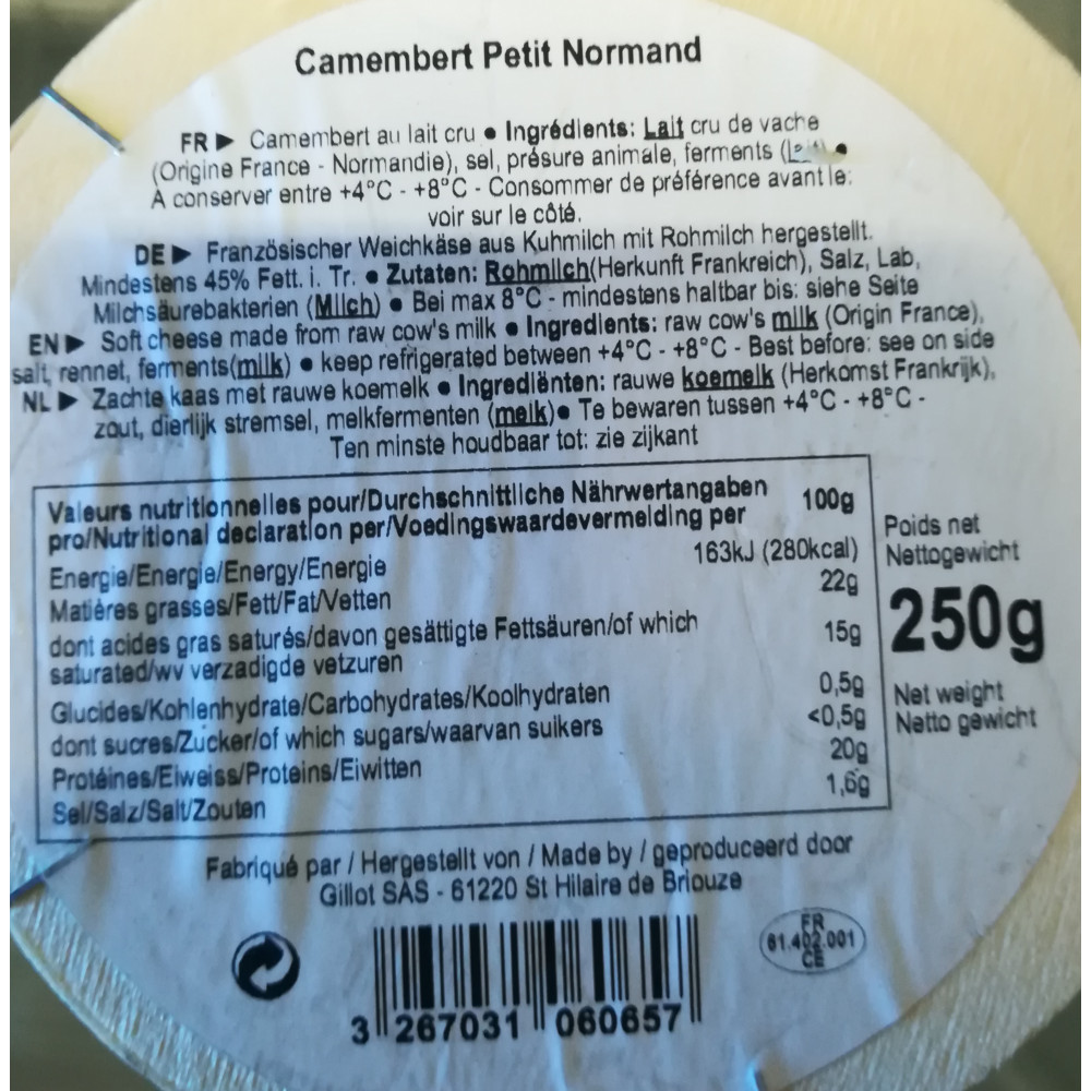 Camembert Petit Normand (45% MG) au lait cru - 250 g