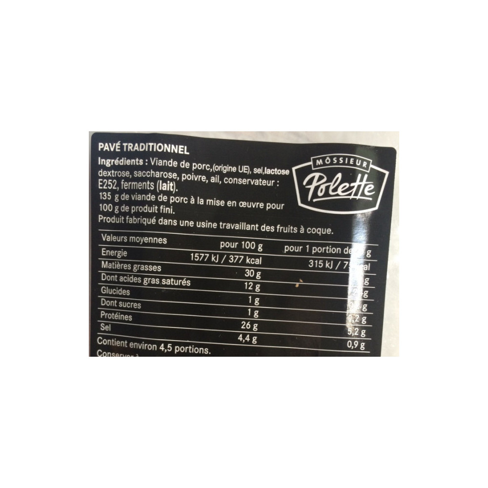 PAVÉ TRADITIONNEL PUR PORC - 90G MR POLETTE