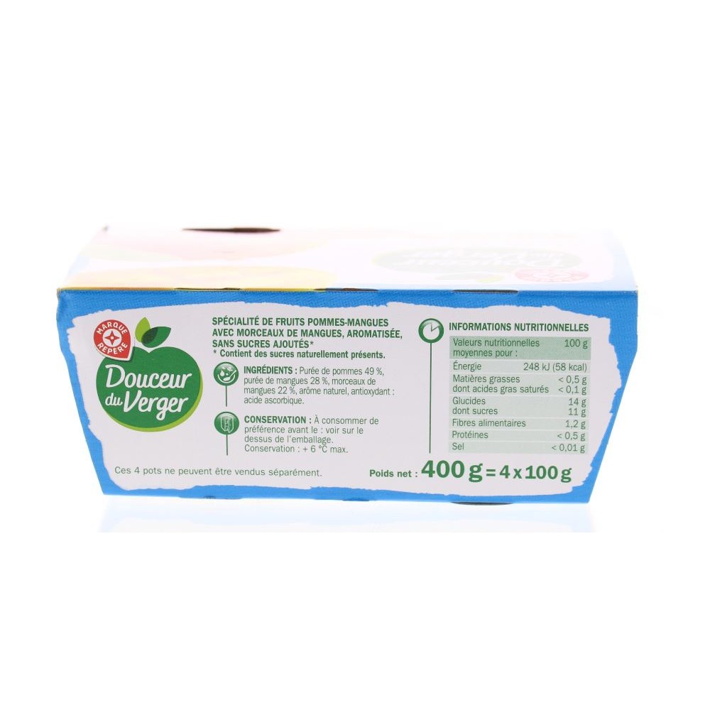 Compotes Pomme-Mangue - DOUCEUR DU VERGER - 4x100g (400g) FRAIS