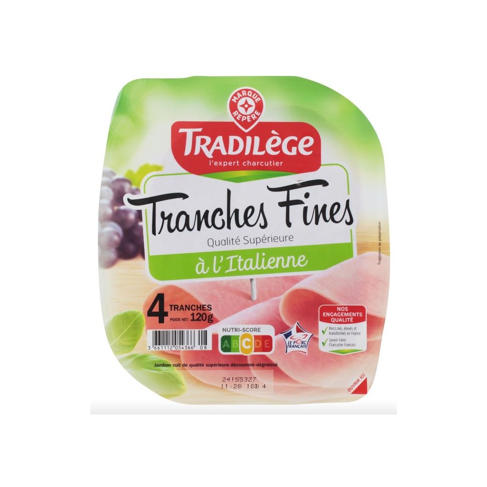 Jambon Tranches Fines à l'Italienne 4 tranches - TRADILEGE - 120g