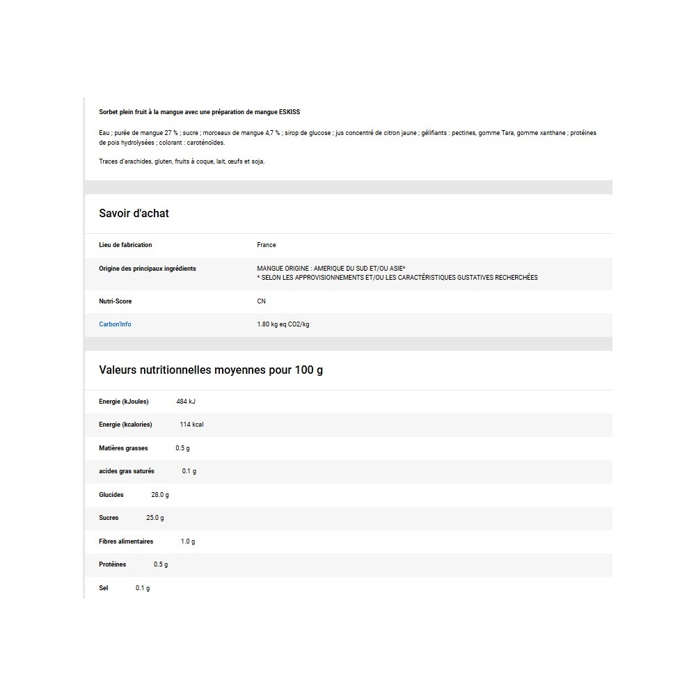 - Sorbet Plein Fruit Mangue