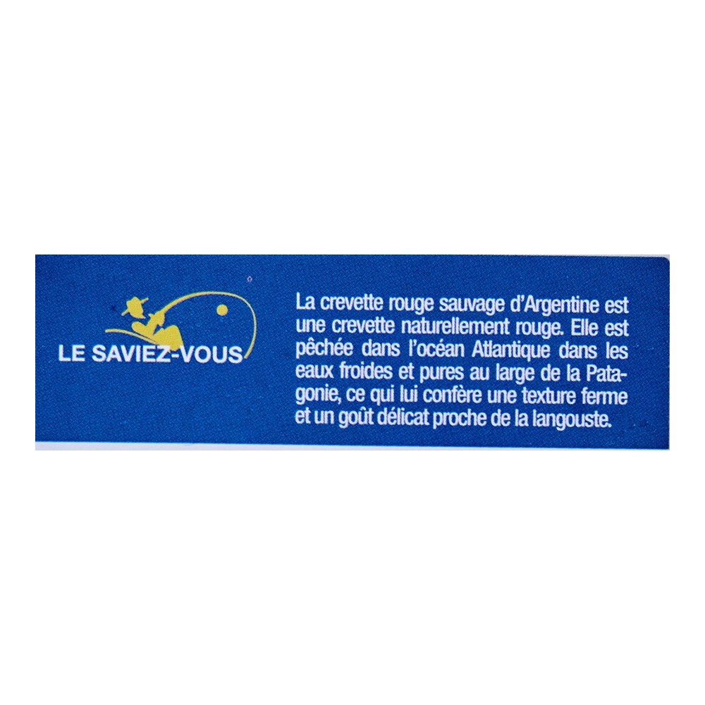 La crevette rouge sauvage d'Argentine est une crevette naturellement rouge.Elle est pechée dans l'océan Atlantique dans les eaux,froides et pures au large de la Patagonie ,ce qui lui confère une texture ferme et gout délicat proche de la langouste.