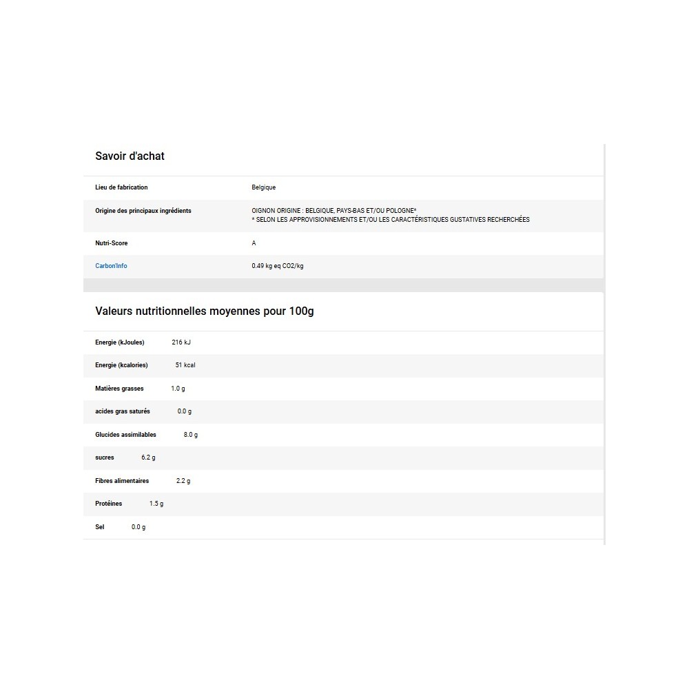 Informations nutritionnelles :