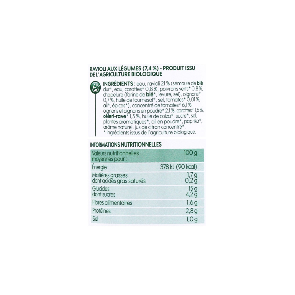 Ravioli aux legumes (7,4%)-Produit issu de l'agriculture biologique