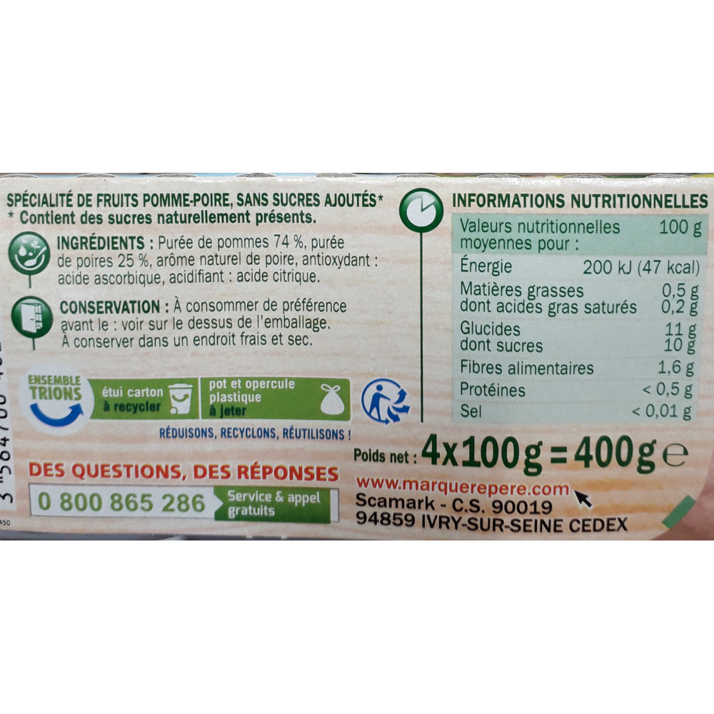 COMPOTE SANS SUCRE POMMES POIRES (4x100)-DOUCEUR VERGER-400G