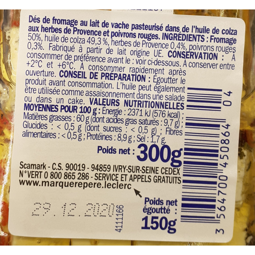Dés de fromage au lait de vache pasteurisé dans l'huile 29% MG - les croisés - 300G