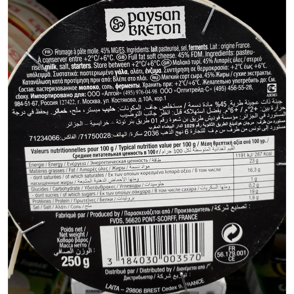 CAMEMBERT 45% MG - PAYSAN BRETON - 250G