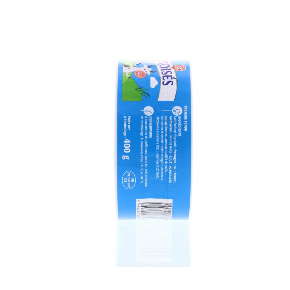 Ingrédients : Lait écrémé réhydraté ; fromages ; eau ; beurre ; lactosérum ; sels de fonte : E331 ; épaississants : carraghénanes, amidon modifié de maïs ; correcteur d'acidité : acide citrique ; vitamine A ; riboflavine (vitamine B2) ; vitamine B12 (lait).