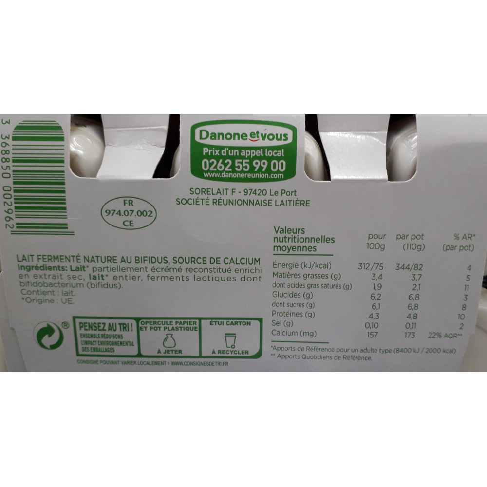 LAIT partiellement écrémé reconstitué enrichi en extrait sec, LAIT entier, ferments lactiques dont bifidobacterium (bifidus).