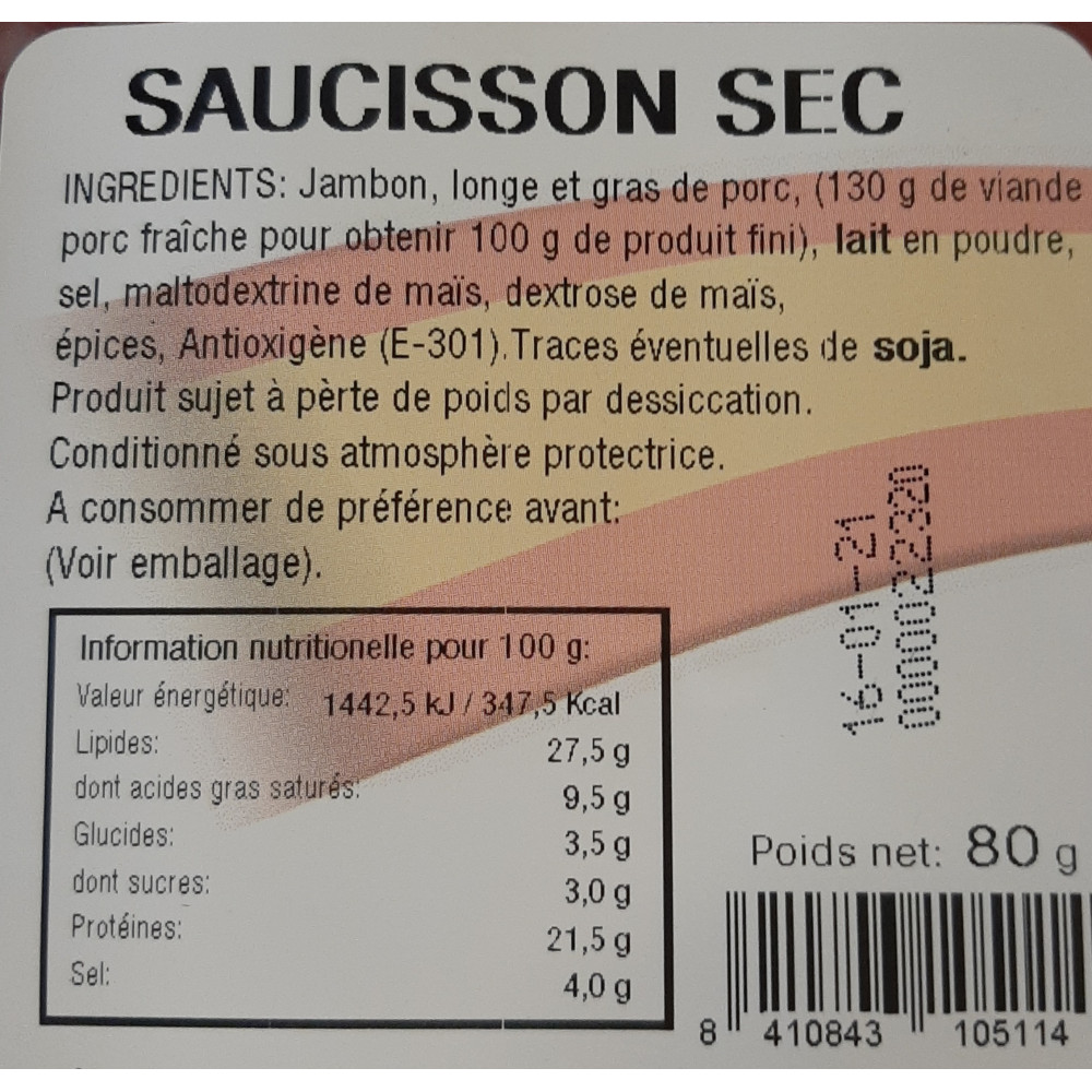 SAUCISSON SEC PRE.TRAN-ELPOSO-80G