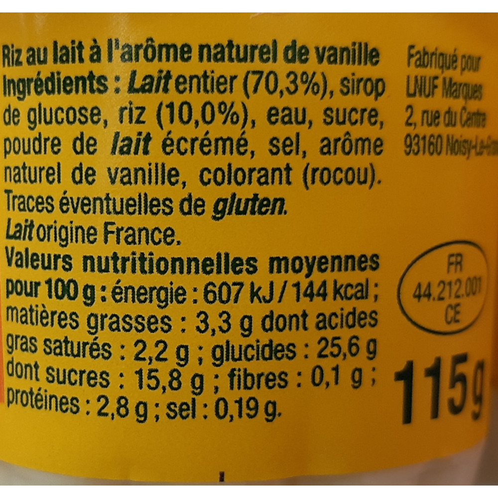RIZ AU LAIT VANILLE (4X115G)-LA LAITIERE-460G