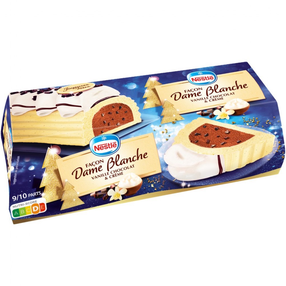 La traditionnelle Dame Blanche revisitée en bûche glacée ! L'association délicieuse de glaces parfum crème, vanille et chocolat pour un moment gourmand en famille !