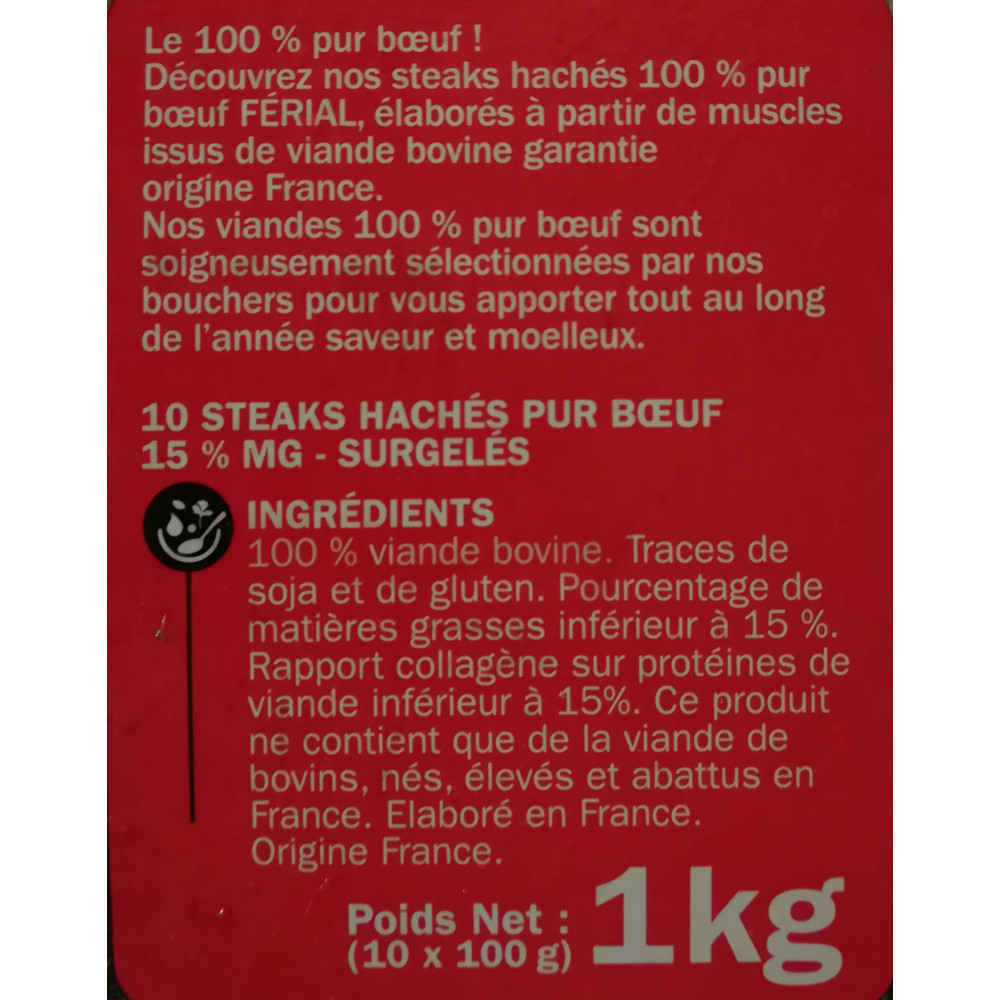 STEACKS HACHE 15% MG X10-férial-1KG