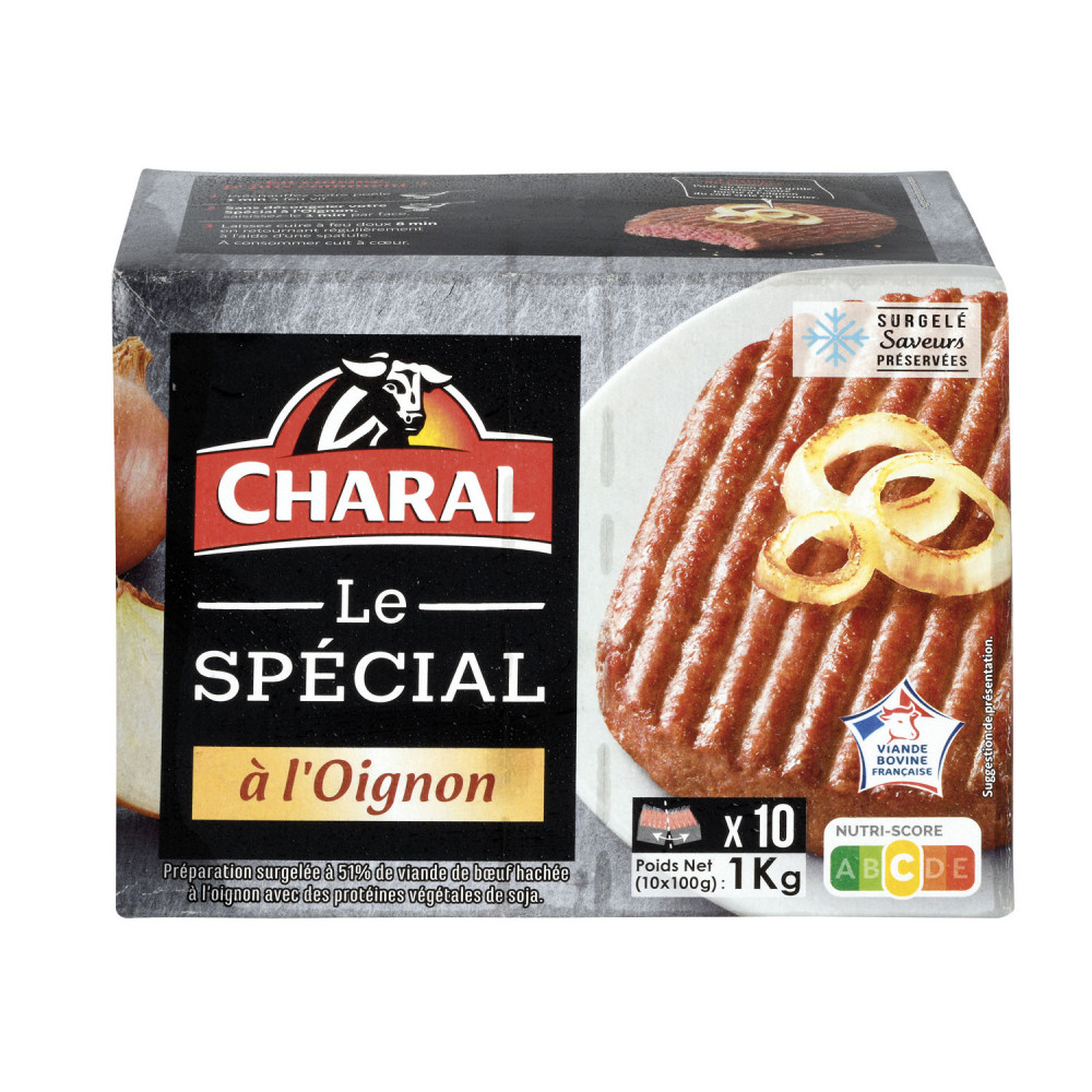 Préparation surgelée à 51 % de viande de bœuf hachée à l'oignon avec des protéines végétales de soja