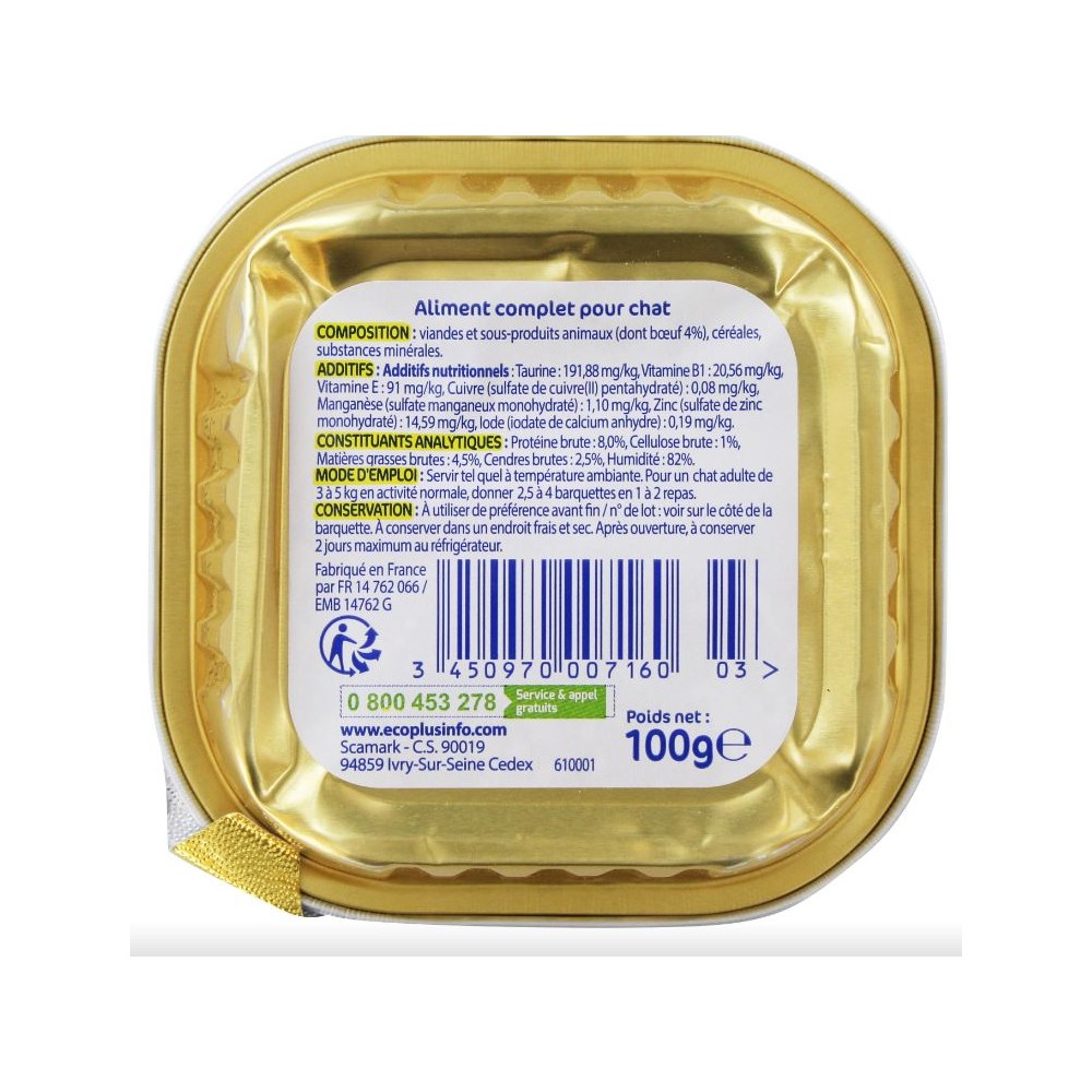 Pâtée au Bœuf pour Chat - ECO+ - 100g