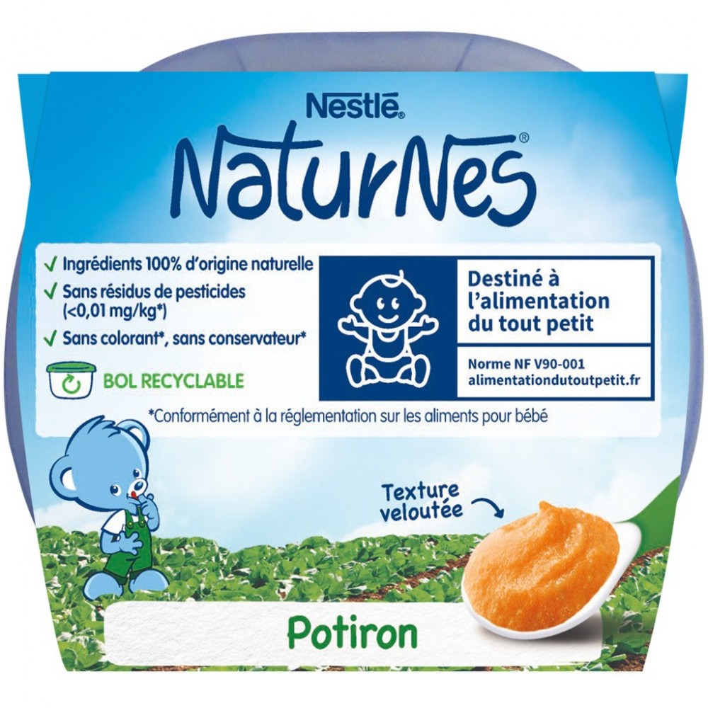 Ne pas consommer si l'emballage (pot, couvercle, opercule) est endommagé. C'est toujours assis bien droit et sous la surveillance permanente d'un adulte que votre bébé peut savourer les produits Naturnes.