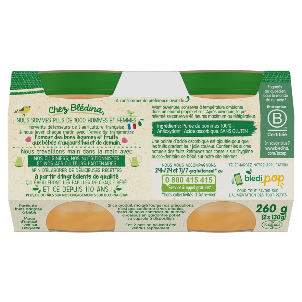 BLEDINA POTS FRUITS Mon 1er Petit Pot Pommes 2x130g Dès 4/6 mois