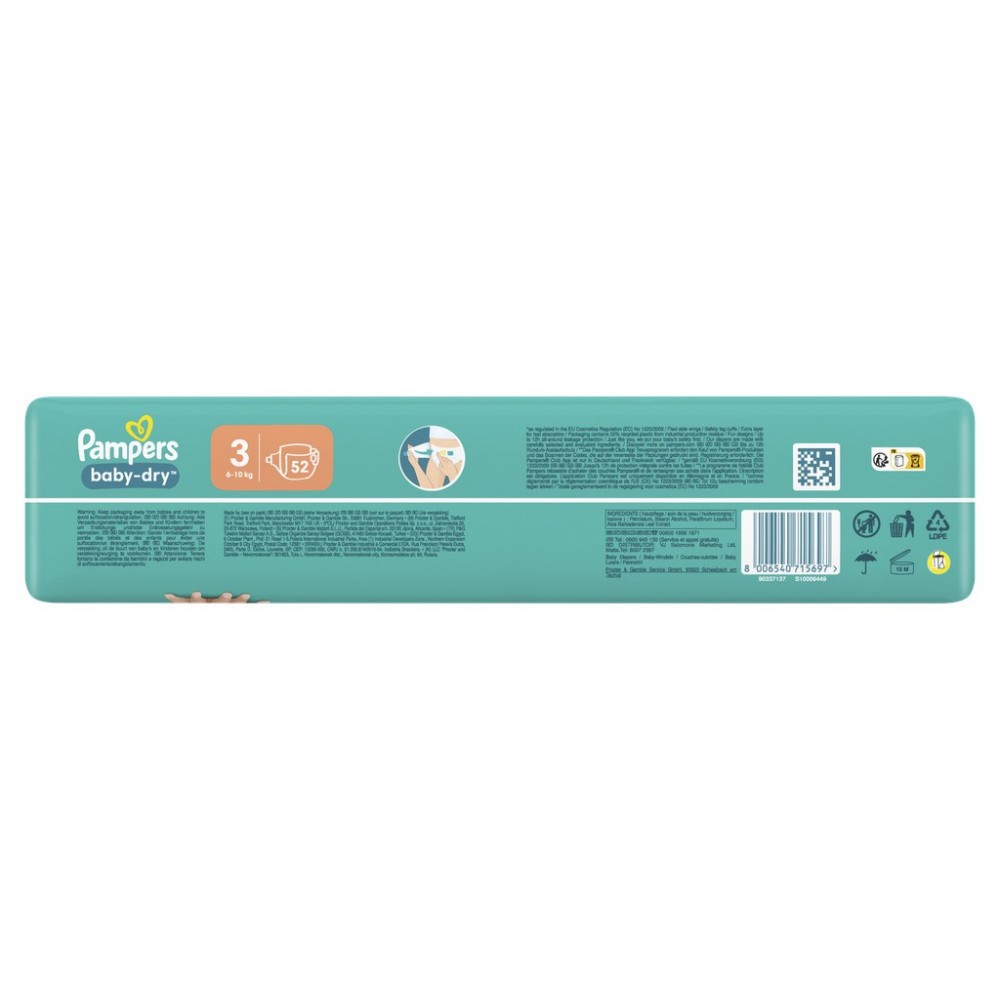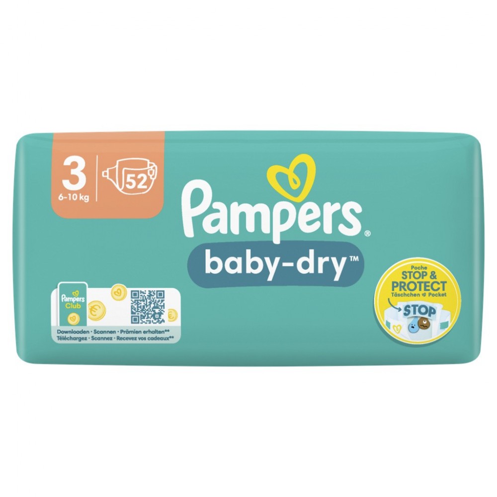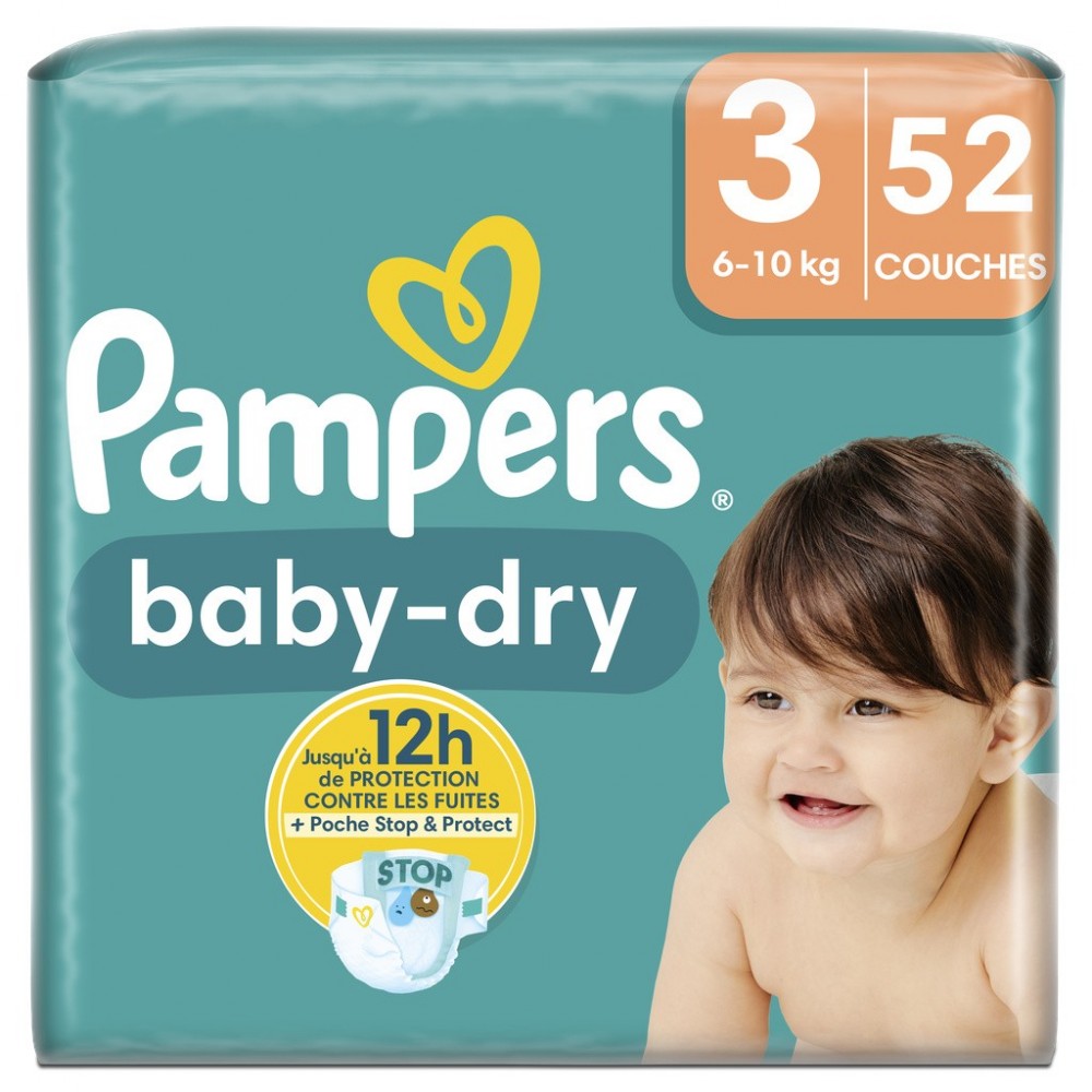 Pampers Baby-Dry Taille 3, 52 Couches, 6kg-10kg