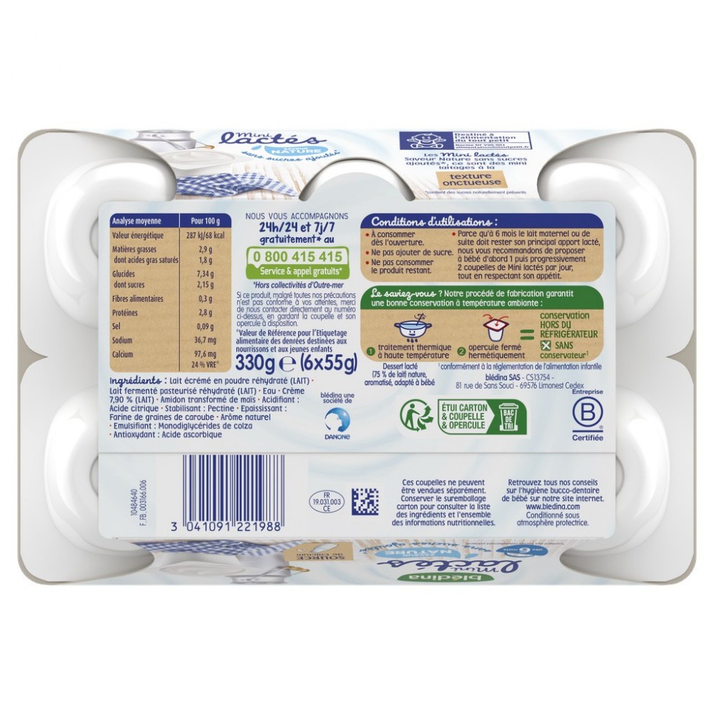 BLEDINA Mini lactés Saveur Nature sans sucre 6x55g Dès 6 mois