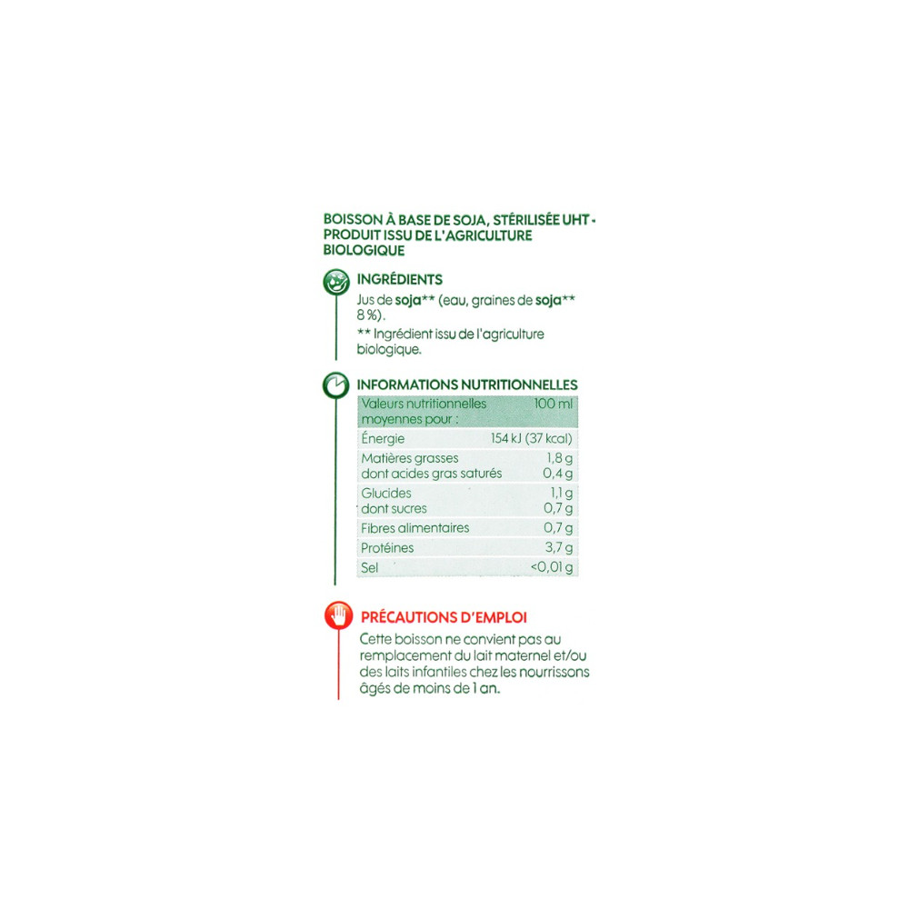 Jus de soja**(eau, graines de soja** 8%). **Ingrédient issu de l'agriculture biologique.