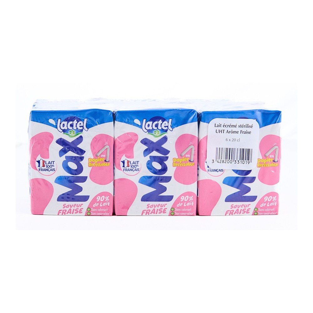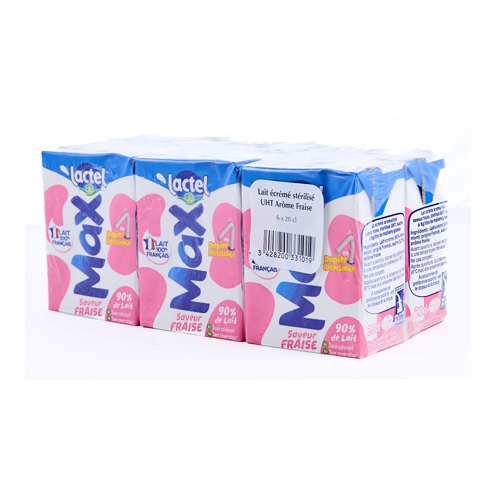 Lait écrémé stérilisé arôme fraise - Lactel - 6x20cl
