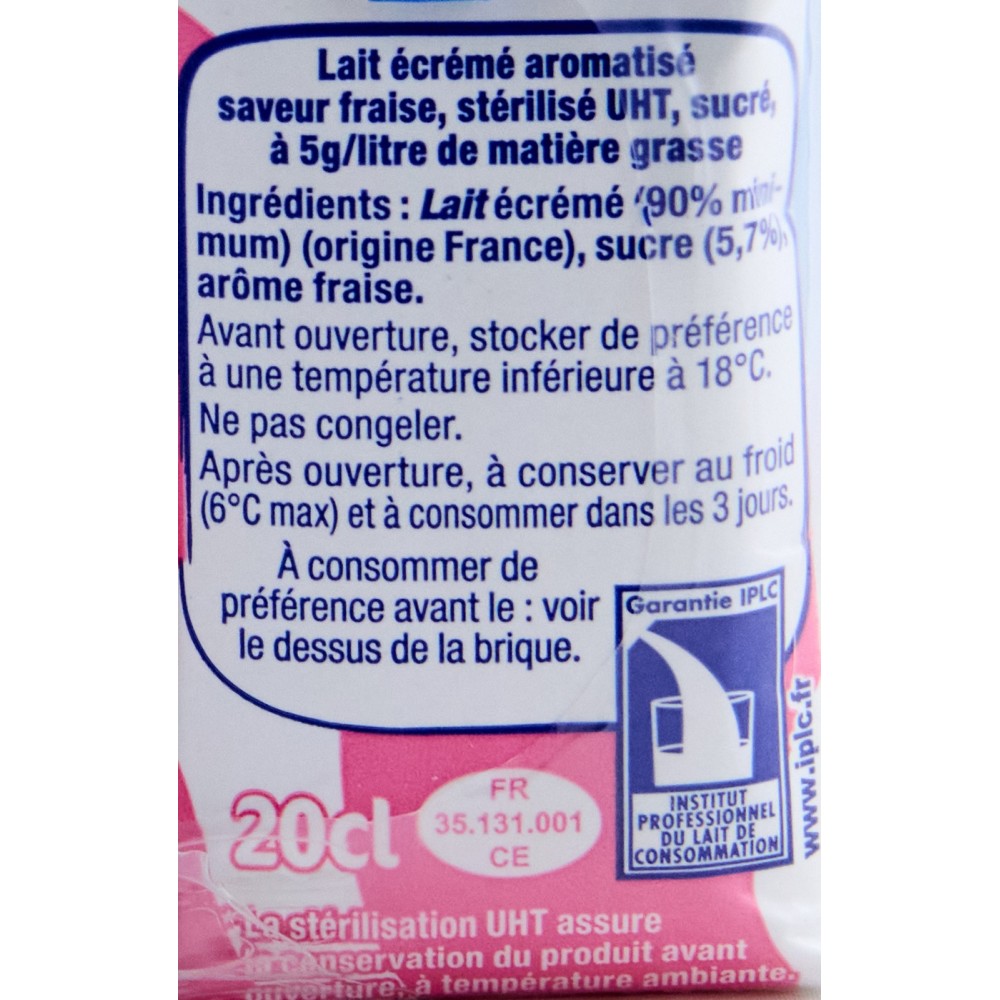 lait écrémé (90%),sucre(5,7%),arome fraise