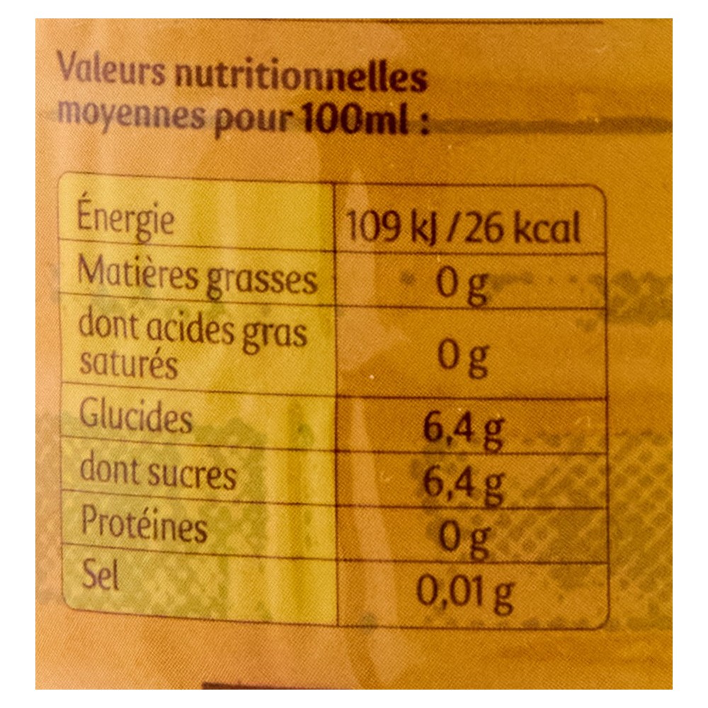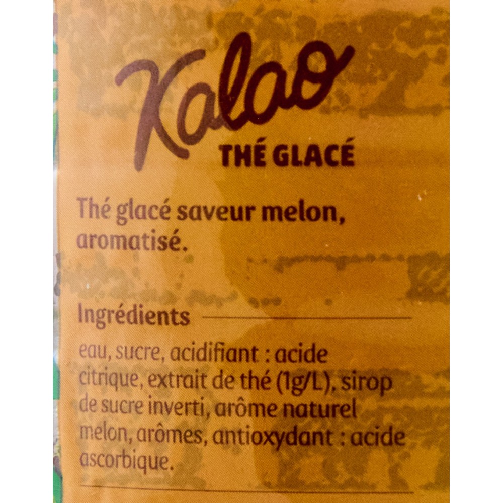 eau, sucre, acidifiant : acide citrique, extrait de thé (1g/L), sirop de sucre inverti, arome naturel de melon, arome antioxidant : acide ascorbique