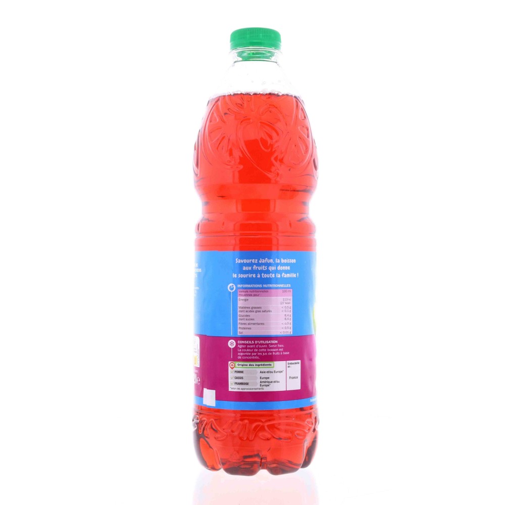 Boisson aux jus de fruits à base de concentrés, aromatisée pomme cassis framboise. Teneur en fruits : 12 %.