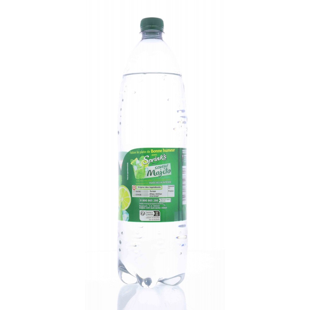 Ingrédients : Eau gazéifiée, sucre, jus de citron à base de concentré 0,5 %, acidifiant : acide citrique, arôme naturel de citron, arôme naturel de citron-citron vert, arôme naturel de menthe, antioxydant : acide ascorbique.
