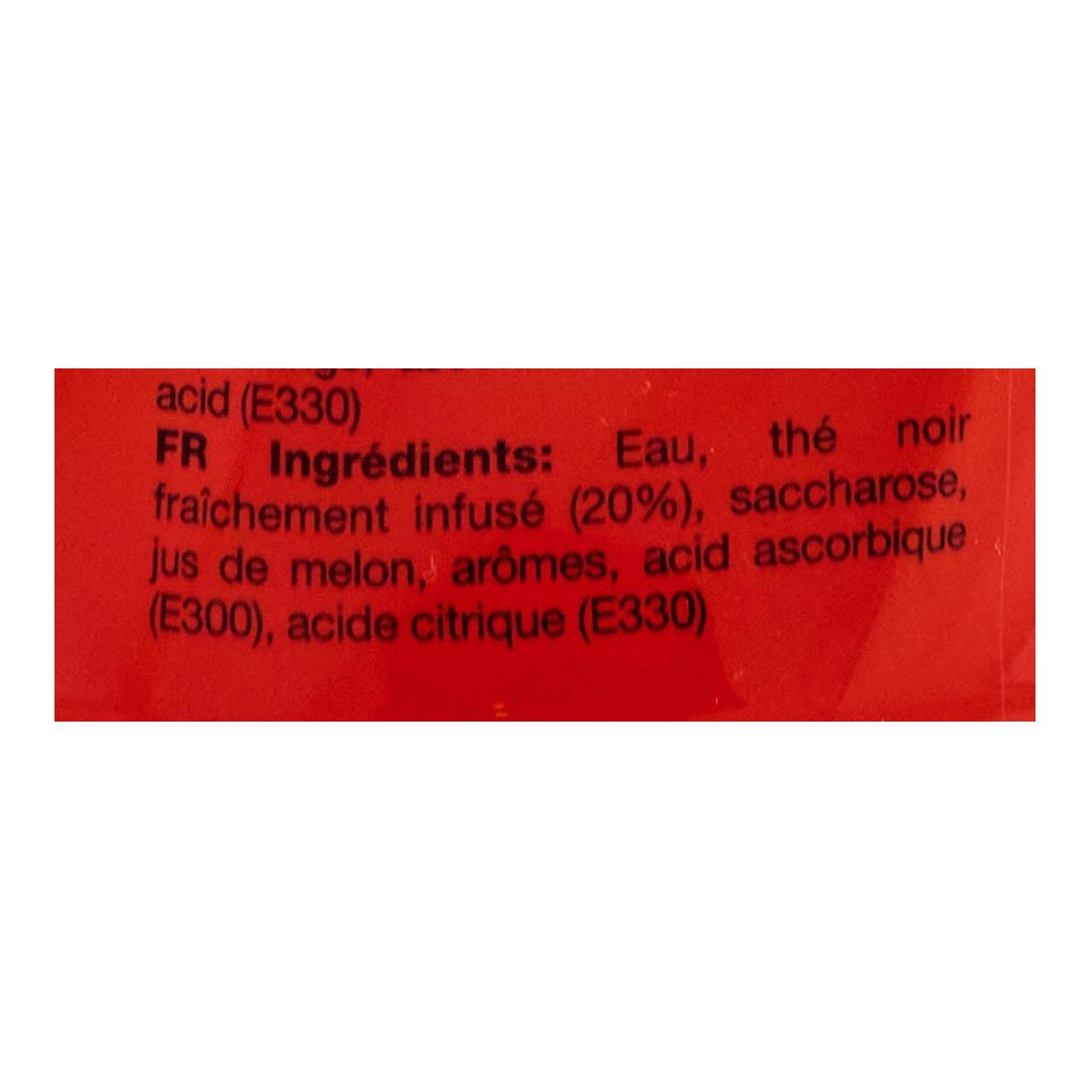 eau,thé noir fraichement infusé(20%),saccharose,jus de melon,aromes acid ascorbique(E300),acide citrique(E330)
