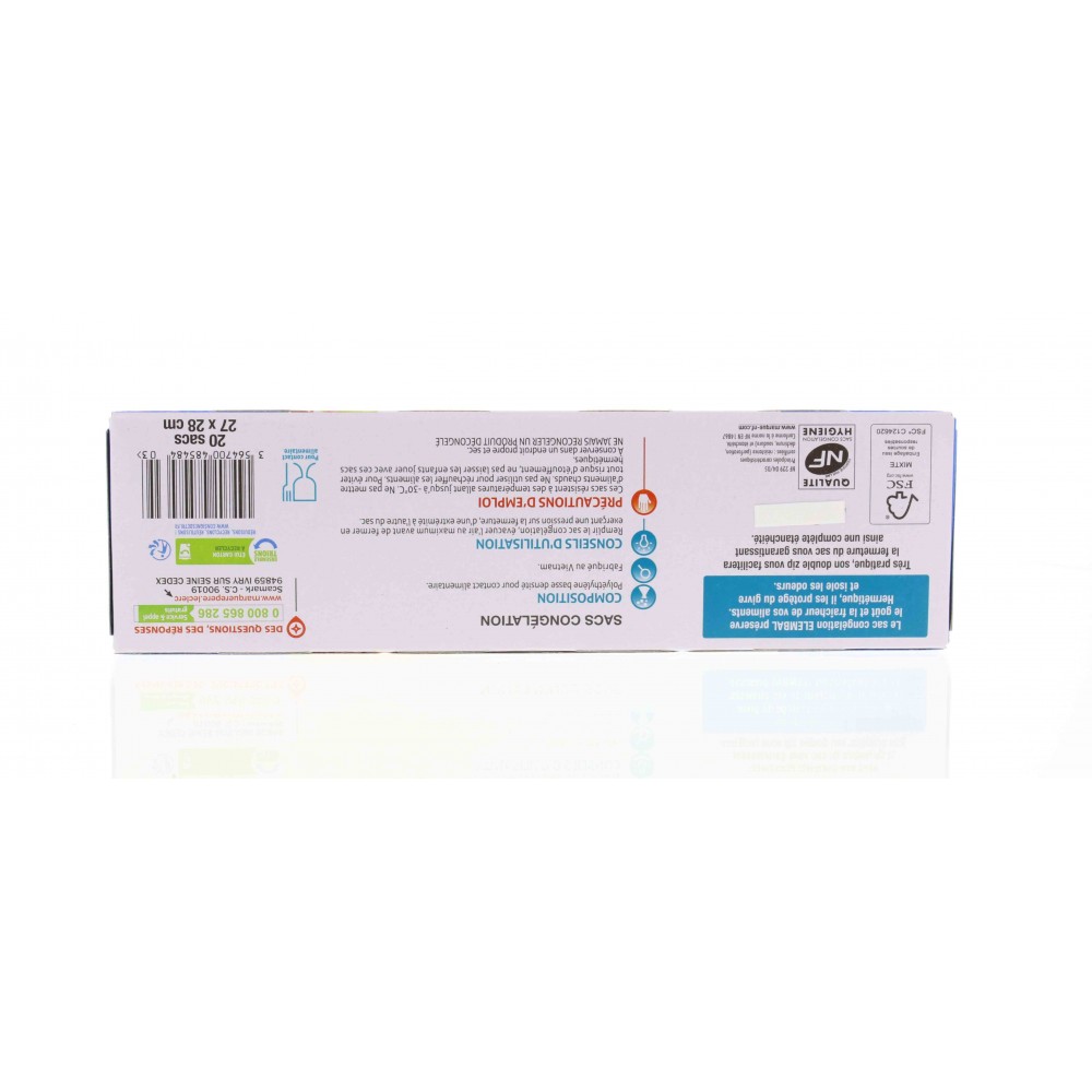 Ces sacs résistent à des températures allant jusqu’à -30°C. Ne pas mettre d'aliments chauds. Ne pas utiliser pour réchauffer les aliments. Pour éviter tout risque d'étouffement, ne pas laisser les enfants jouer avec ces sacs hermétiques. A conserver dans un endroit propre et sec. NE JAMAIS RECONGELER UN PRODUIT DÉCONGELÉ.