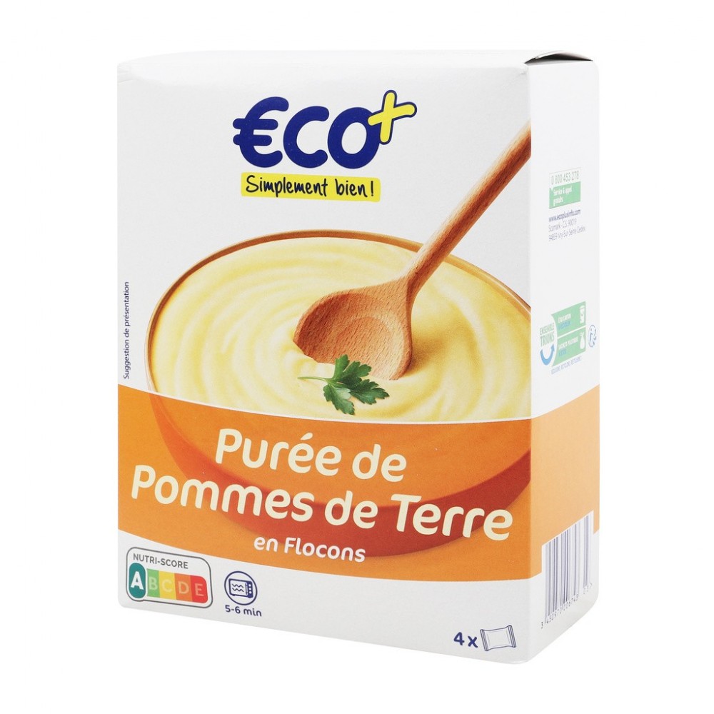 Ingrédients: Pommes de terre 98,9 %, émulsifiant : E471, curcuma en poudre, stabilisant : E450, antioxydant : E392, acidifiant : E330.