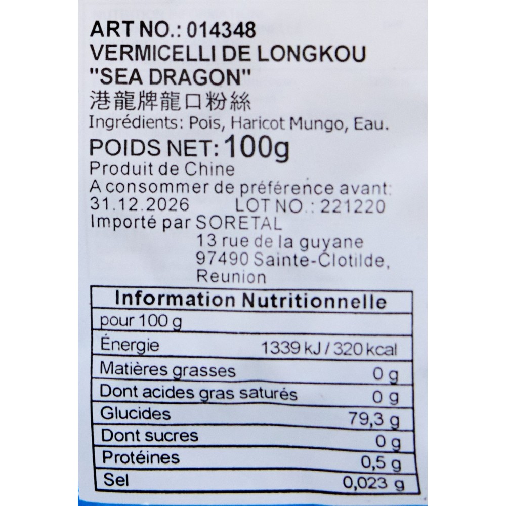 Vermicelles de longkou - SEA DRAGON - 100g